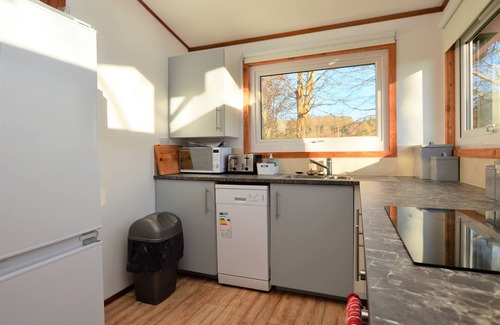 Newly refurbished the interiors are of a modern and comfortable standard. The lodge comprises of a spacious open plan living area with comfortable lounges, large TV screen, and an inviting wood burning stove. Wonderful views are featured from the comforts in your living room through the large windows. On chilly evenings cosy up and stretch out in front of the wood burner with a good book and a glass of your favourite tipple.