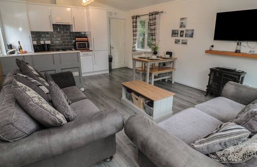 Tranquil Lodge in Swarland, Northumberland sleeps four guests in two bedrooms.