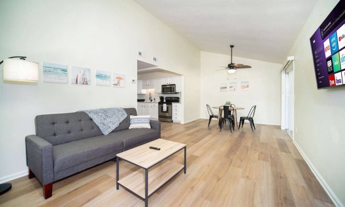 Nestled in an established neighborhood, Tranquil Manor offers an escape while still being close to the city's attractions. The living area is a cozy space to relax and unwind. Our unit offers 2 bedrooms with a queen bed, twin bunk beds, a sofa bed, and a full bath. Simple decorations complement the tranquil ambiance, creating the perfect spot to read a book or catch up on your favorite shows. Kick back on the comfortable sofa and enjoy the natural light that fills the room.