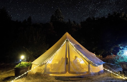 Tranquil Mountain Glamp: Swimming, Organic Meals, Hike Trails + Kayaking is located in Burnt Ranch. Tranquil Mountain Glamp: Swimming, Organic Meals, Hike Trails + Kayaking provides accommodation, featuring Sports/Activities, Child Friendly, Parking, among other amenities. This Bed & Breakfast features Sports/Activities, Child Friendly, Parking, to make your stay a comfortable one.