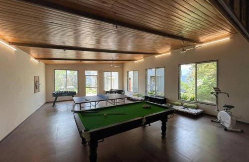 Tranquil Mulshi Villa with 4 Bedrooms offers accommodations in Mulshi, 24 miles from Fergusson College and 24 miles from Raja Dinkar Kelkar Museum. This property offers access to a balcony, free private parking, and free Wifi. Outdoor seating is also available at the villa. The spacious villa includes 4 bedrooms and a living room with a TV. Towels and bed linen are featured in the villa. For added privacy, the accommodation features a private entrance. Guests can enjoy the outdoor swimming pool and garden at Tranquil Mulshi Villa with 4 Bedrooms. Srimant Dagadusheth Halwai Ganapati Temple is 25 miles from the accommodation, while Pataleshwar Cave Temple is 25 miles away. Pune International Airport is 33 miles from the property.
