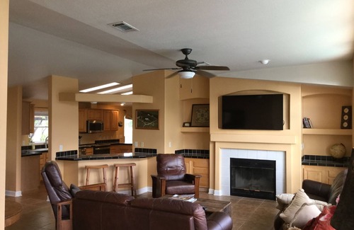 House sleeps 9 comfortably and has many outdoor amenities including: pool, hot tub, bird watching, fire pit, outdoor dining area, hiking and picnics creek side.