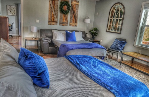 Conveniently located just 10 minutes from Liberty University and other key attractions, the Tranquil Lynchburg Retreat allows for easy access to essential amenities and picturesque locations. Within a short drive, you'll find shopping, restaurants, and popular sites like Poplar Forest and the River Ridge Mall. Additionally, several wedding venues such as Glencliff Manor and Sorella Farms are less than 15 minutes away, making it an excellent choice for couples seeking both convenience and charm in their wedding accommodations.