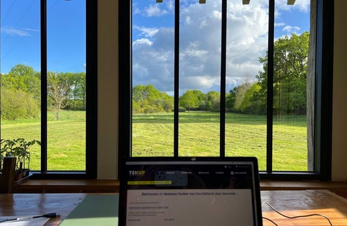 This comfortable and spacious cottage, suitable for people with reduced mobility, offers absolute tranquility in the middle of the woods. Ideal for a few days' escape or a week of teleworking in the countryside. A new tennis facility is available next to the house. The house, bathed in light, is entirely oriented towards nature, offering great walks in the woods. A billiard table will enhance your evenings by the fire. Single-storey gîte completely renovated and accessible to people with reduced mobility with a large and beautiful living room with lounge (fireplace and billiard table), dining room and open kitchen, a bedroom with two single beds 90x200 cm (can be pushed together), a bathroom and a separate toilet.