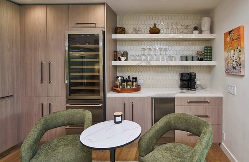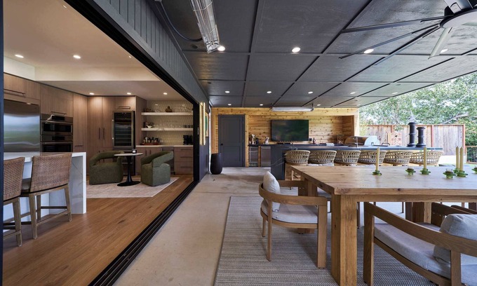 Tranquil offers indoor comfort and heated outdoor living with plenty of space to relax. Enjoy a covered patio with outdoor kitchen, bar seating for 10, conversation area, gas firepit, and a large putting green. Inside, the fully renovated home features a chef’s kitchen with high-end appliances, huge fridge/freezer, ice machine, wine fridge, and bar area. Half bath off living room for guests. Includes 3-car garage and EV charger.