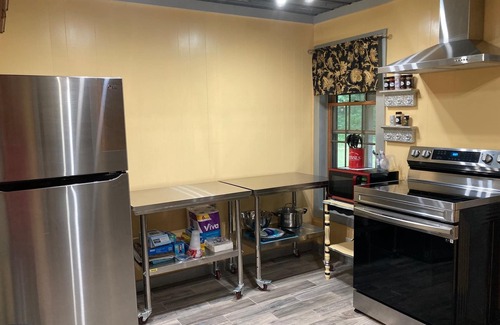 16 wooded acres, beautiful gardens to enjoy and a 1 acre stocked pond with fishing poles for 3-4 guests. Onsite catering available for your next event. World class Trout fishing, music festivals, antique shops and incredible caves to explore nearby.