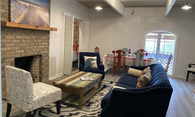 This estate suite offers accommodations for up to 10 guests. It has a fully stocked kitchen, dining area, living room, games for the family, 2 full bathrooms. An incredible front porch theat is 85' long. Perfect for entertaining everyone and a small firepit. We also have outdoor games for everyone.