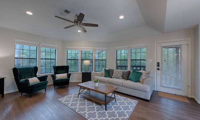 The TreeHouse Retreat is conveniently located in the heart of the Woodlands, with all of its main attractions within a 5-minute drive. From parks and lakes to bike paths and green belts, you'll have endless opportunities to explore the outdoors. Need to stock up on groceries or grab a bite to eat? Whole Foods, restaurants, and cafes are just a short drive away. And if you're in town for a concert or event, the award-winning Cynthia Woods Mitchell Pavilion Amphitheater is just 4 minutes away by car.