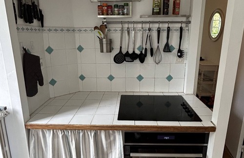 The kitchen (12m²) which is well-equipped. There is a new dishwasher, fridge-freezer, a washer-dryer, an electric oven/hob with tiled surround, toaster, a modern espresso coffee machine and storage. The floor is tiled. The most attractive feature of the kitchen is that it leads to the decking terrace with the river view just outside, which makes the French breakfast experience of coffee and croissants (whilst overlooking the river) a daily pleasure.