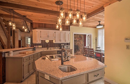 Escape to the Smoky Mountains and stay at this well-appointed 4-bedroom, 3-bathroom vacation rental cabin in Newport, Tennessee. Take your pick of venturing to Pigeon Forge, Gatlinburg, or Smoky Mountain National Park for the day to embark on hiking adventures, tour museums, or take the kiddos to fun theme parks. Look forward to returning to the property to relax on the covered porch with a nightcap after enjoying a family meal prepared in the fully equipped kitchen and tucking the kids in bed.