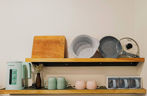 This apartment is located on the third floor of the house (above ground floor), which has a comfy queen bed wrapped with soft bedsheet, a stylish en-suite bathroom, a sofa and a compact kitchen.