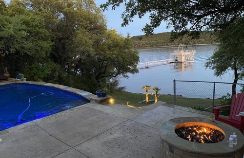 Tranquil Waterfront property with a pool, hot tub, fire-pit & large patio. | House in Graham