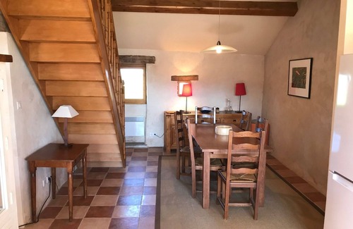 Set on a 2 hectare property next door to the owner's house , it has its own large South facing terrace, table and chairs , sun umbrellas and BBQ facilities. Your views look down to a large water feature , forests and far distant mountains . Please note : There is NO SWIMMING in the water feature
