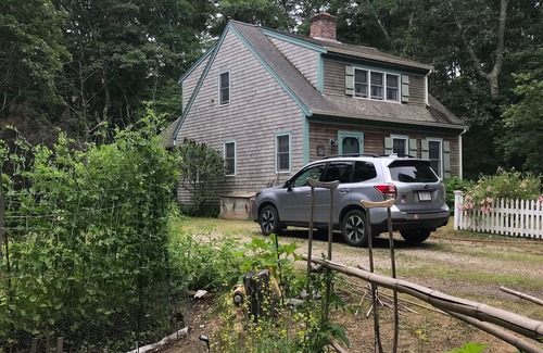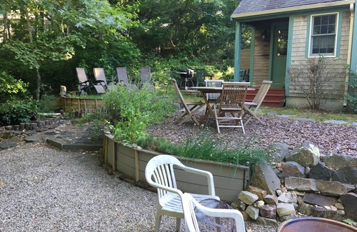 A peaceful, well-maintained 2-bedroom home at the end of a lane with no through traffic. Surrounded by trees and gardens. A birder’s delight. You may even see a deer amble by. Feels far away from the hustle and bustle, but is convenient to both Rt. 6A and Rt. 124. The beach and spectacular sunsets on Paine’s Creek are less than 3 miles away. The Cape Cod bike trail and swimming at Seymour Pond or Long Pond are a mile away. The property has an extensive garden, an outdoor shower, and Weber charcoal grill. Enjoy the stars as you toast marshmallows at the firepit. The large eat-in country kitchen is well equipped with plenty of room for cooks. The living room with reclining chairs and sofa is a great place to read one of the books on the shelf, listen to music or play a game from the cabinet. Upstairs are 2 large bedrooms with queen size beds, desks and plenty of closet space. A full bath is just outside the bedrooms. A half bath is on the first floor.