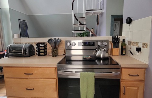 The kitchen is equipped with everything you would need to stay at home and cook dinner or even bake cookies.