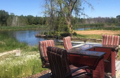 Tranquil property to Spend your Vacation or just a long Weekend. Walking distance to Potawatomi State Park, Idlewild Golf Course only 1 mile from Cabin. Sturgeon Bay only 6 mile drive. Dock to Fish off or park your Fishing Boat at. Wild flowers All Around You feel like you are in Paradise So Quiet. You will see much Wildlife around You Geese, Cranes, Swans, Turtles, Frogs, And Deer. Enjoy the Two Outdoor Fire pits on site with wood provided for you.