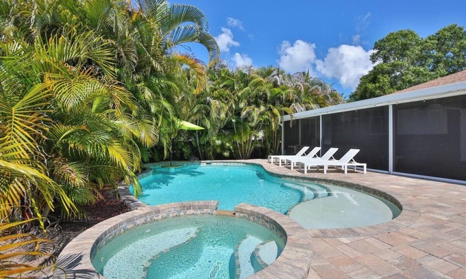 Tranquility Found Heated Saltwater Pool + Spa | House in Palmetto