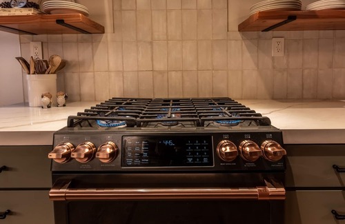 Fabulous living area with quality, comfortable furnishings, sit back and relax by the wood fireplace and take in the views! Designer kitchen with state of the art appliances and a gas range. Well stocked with the essentials to make your stay more enjoyable.