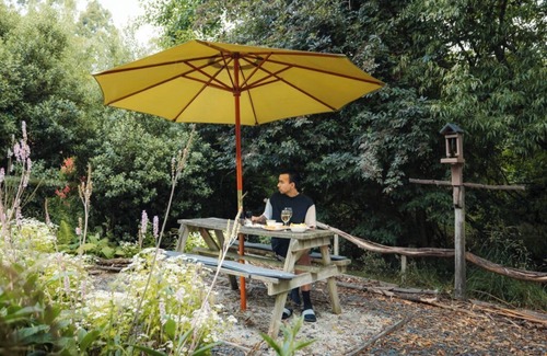 Escape the drowning pressures of city life and experience the slow and laidback lifestyle at Tranquility Tiny House in South Island, New Zealand. It's one of the tiny house rentals surrounded by abundant vegetation and native birdlife (such as Tui, Bellbird, Kereru, etc.) to keep you company.