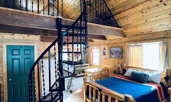 Adorable cabin located at the Greyhouse Inn property which is 7 acres in all. There are other accommodations on the property. This stand alone cabin has a Queen bed, 2 single beds in an open loft and a couch that can also sleep one. It also has a bathroom with both a tub and shower. Fully equipped kitchenette with everything you need for light cooking. There is plenty of room on the property to enjoy the outdoors and firepits are available for fireside fun. BBQ available upon request.