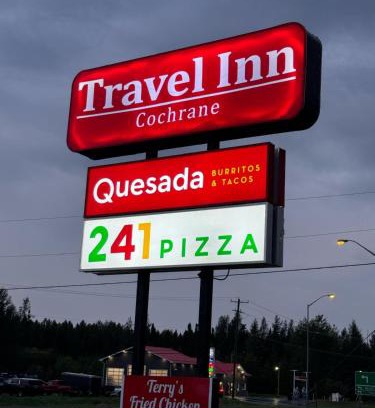 A microwave and a refrigerator are featured in all rooms at this Cochrane, Ontario hotel. A restaurant is located on-site. Free Wi-Fi is included. Polar Bear Habitat is 0.6 mi away. A flat-screen cable TV and a desk are offered in each room at Travel Inn Cochrane, located in Ontario. Coffee-making facilities and a seating area are provided. Terry's Steak House Restaurant serves burgers, soups and salads. A hot tub and a sauna provide guest relaxation options. The Polar Bear Express train leaves from Cochrane train station just 10 minutes’ walk away. Lee Golf Club is 1.2 mi from the Ontario Cochrane Thriftlodge.