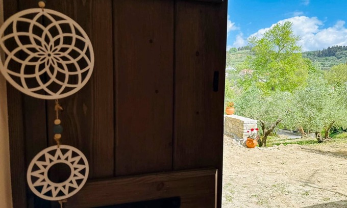 The living room is overlooking the Cretan hills, and contains a wood stove as well as an aircon, ensuring a comfortable stay all year round. Next to the living room you will find a fully equipped kitchen with all the essentials for preparing any meal you feel like. There is a fully equipped bathroom for your comfort.