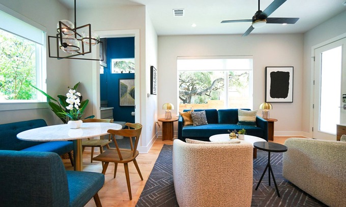 Welcome to Stamford! This amazing back house in Travis Heights is the perfect spot for business travelers, friend reunions, or families alike. Modern design, beautiful finishes, open floor plan, and plenty of space for a small group. The property has a total of 2 bedrooms plus sleeper sofa in living room & 2.5 bathrooms and can sleep 6 guests. Just a quick drive or Uber ride to Downtown Austin and a short distance to the lake, this home is the perfect landing spot for your weekend getaway. Book now and Stay Awhile.