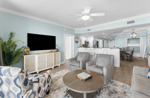 - Spacious Accommodations: The elegantly decorated condo features a King bed in the master suite, another King bed in the guest room, and additional sleeping options with a Queen sleeper sofa and twin-over-twin bunks, ensuring ample space for all your wedding guests.