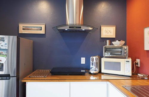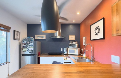 Welcome to a one-of-a-kind guesthouse created by a Swiss-born professional photographer and freelance artist. This attractive open studio space is part of my "Gesamtkunstwerk" (entire body of work), still in flux. Featuring murals and curated pieces from across a lifelong creative journey. Thoughtfully designed with passion and purpose, the space offers both inspiration and comfort in the heart of Tucson.