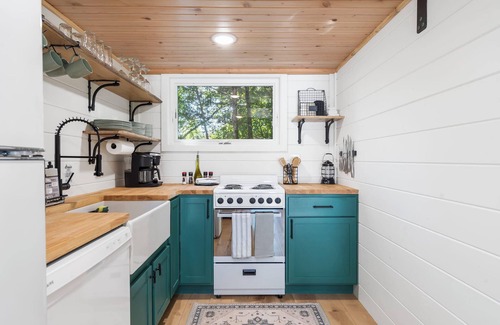 The cabin interiors are cozy yet spacious and designed for your ultimate relaxation, featuring an abundance of natural light and comfortable living room sofas. Foldable café tables with 2 chairs apiece can host a friendly game of cards and are also suitable for enjoying any meal you choose to prepare at home. The kitchens are fully equipped with all standard appliances and dual single-cup and drip coffee makers. You won’t find a TV in these cabins, however, don’t let that deter you. After all, you might just welcome a break from all the noise! Onsite Wi-Fi is still available should you need to stay connected and in touch.
