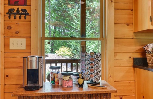 'Tree Haven' is a beautifully decorated 2-bed, 2-bath log cabin nestled in the sought-after Cherry Log Mountain and surrounded by mature hardwoods and greenery. This vacation rental offers a new hot tub, gas fireplace, covered deck, fire pit, grill, in-unit laundry, and more. A paved road will lead you up the mountain to the cabin where you can spend your days hiking local trails, visiting local wineries and tap houses, riding the Blue Ridge Scenic railroads, or floating down the Toccoa River!