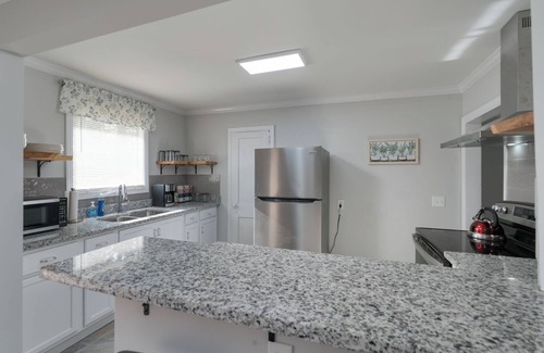This house is recently remodeled. It has a large deck with seating for 10. There is a perfect reading patio overlooking the gardens. Flooring is tile and LVP. Parking available for three cars in the back and one in the front. The house is 1,100 s/f two bedroom one and a half bath. The house is close to the downtown area, Winthrop and the Indoor Sports Complex. Many restaurants in the area. Please don't hesitate to ask for suggestions.
