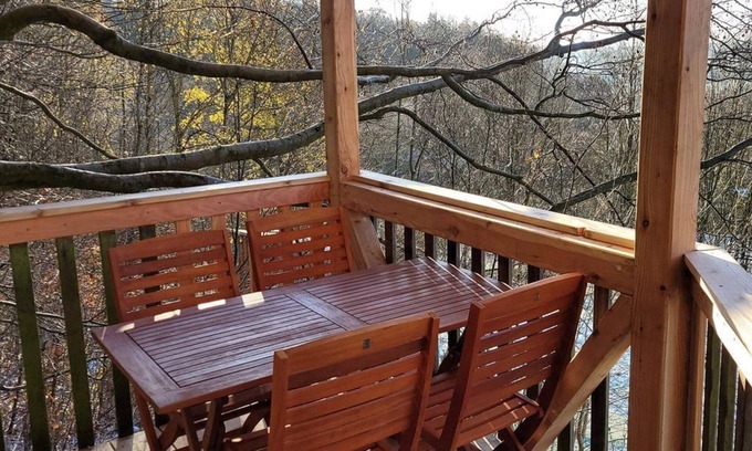 Tree house Sollingblick, living/bedroom - Baumhaushotel Solling has 1 Bedroom , 1 Bathroom, and max occupancy of 4 people. The minimum rental for this property is 1 nights, but this can change depending on the season you plan on staying. Previous guests have given good rated it, and VRBO labeled it a top-rated Apartment because of the excellent services rendered by the owner or manager of this Apartment, and has consistently provided great experiences for their guests. Most families or guests that use it recommend it to their friends and some of them are repeat guests. Apartment has a friendly neighborhood, and the Uslar has interesting places to visit. If you want to learn more about the Apartment in Uslar, such as places to visit and things to do nearby, you can check below to learn more.