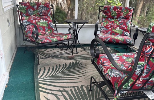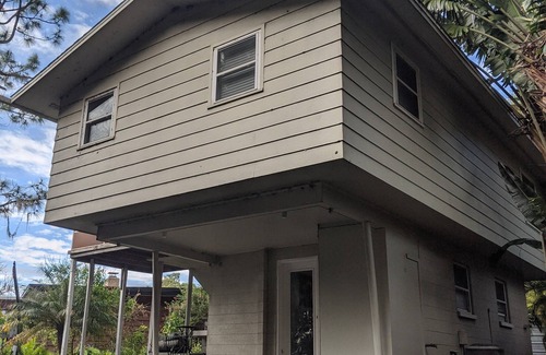 We're a quiet, small, serene old neighborhood on the end of a cul-de-sac and nearly floating on a lagoon! Florida nature at it's finest. The home is just 4 feet off the sea wall so the home is best suited for adults that are looking for that quiet get-a-way. Upper has 2 beds & a tri-fold mattress. Our driveway is shared so we can accommodate for one vehicle and it must fit under our carport and there is no street parking. No smoking, vaping, or illegal drugs permitted.