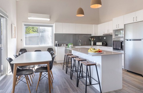 The holiday home sits on a large bush block located within walking distance of Frothy Coffee and the local playground. A large deck wraps across the front allowing an excellent outside living environment for all guests. A gas BBQ is provided for your enjoyment and an outside shower for when you return from the lake and beach.