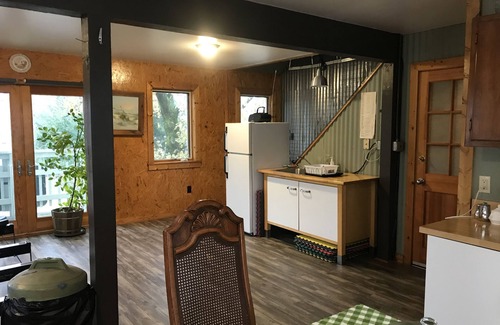This stay is a 3rd floor sleeping and living room with a private bathroom. The 2nd floor below your guest space is a kitchen, second bathroom and workout area shared with occasional river users.