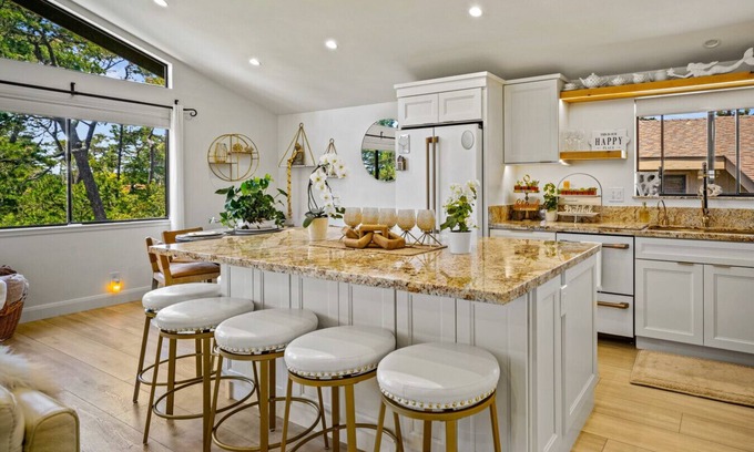This newly remodeled, luxurious retreat is within walking distance of the shops, restaurants, and galleries in Carmel-by-the-Sea. It offers elevated forest views with a glimpse of the ocean, abundant natural light, and privacy. Inside, you'll find an open living space with vaulted ceilings, perfect for entertaining or relaxing, along with a gourmet kitchen, two spacious bedrooms, and two full baths. Brought to you by Peninsula Luxe.