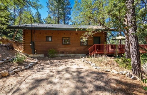 When you stay at the Treehouse Cabin you will feel like you are deep in the forest but you are only 10 minutes from the center of Prescott (5.5 miles). When you walk out on the deck you will have the perception of living in the trees. The deck also overlooks a seasonal creek that deer and other wildlife use as a thoroughfare passing the property. Ponderosa, oak and cottonwood surround the cabin providing a wonderful sense of privacy allowing you to relax.The cabin will sleep up to 9 with Queen bed in the MB & Loft, Queen sleeper sofa in Living area, as well as Full Futon and Twin bed in Loft. If you would like to bring your pet, a pet fee is required.