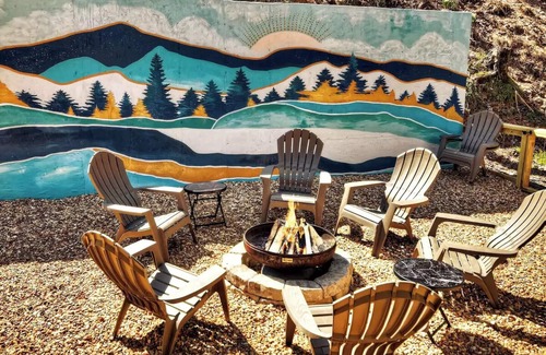 You could also throw some logs on the outdoor fire pit and roast marshmallows or hot dogs. Be sure to admire the Insta-worthy Blue Ridge mural behind you and the beautiful night sky above you!