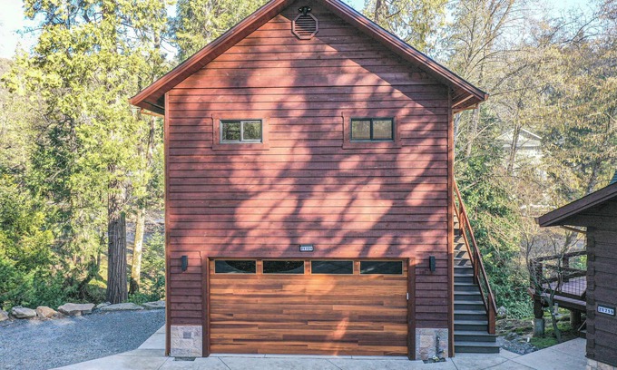 Tucked away in the peaceful foothills, this brand-new, studio-style guest suite offers the perfect blend of modern luxury and natural serenity. Set above the owners garage, this private, elevated retreat feels like a charming treehouse, surrounded by tall trees and perched over a seasonal creek that meanders through the landscape. Granite rocks dot the area, adding to the rugged beauty of the setting, and the sounds of rustling leaves and flowing water create a soothing, immersive experience in