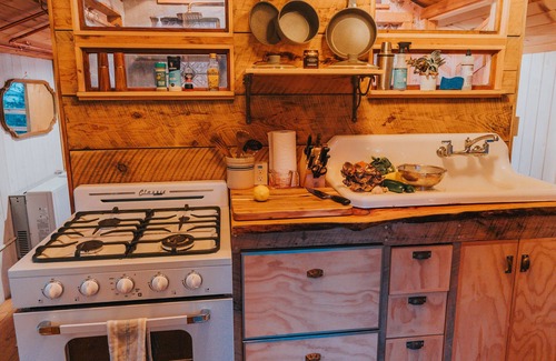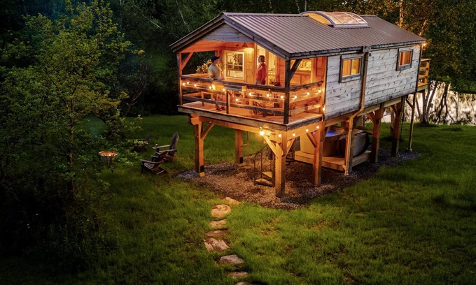 - Insanely romantic treehouse perched next to a stream and rolling hills.