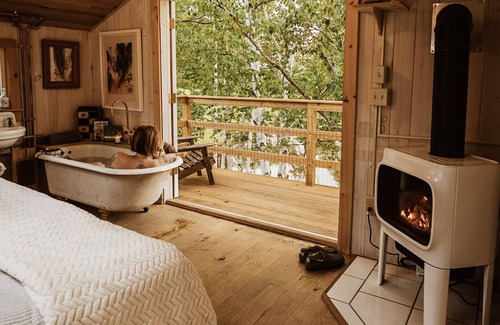 - Romantic Riverbed Treehouse - hot tub & new sauna!