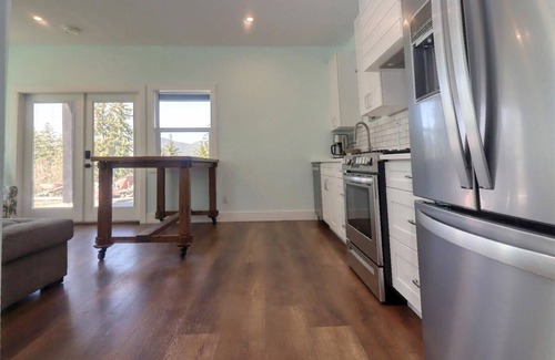 Relax on the patio or at the beach on Shuswap lake which is less than 10 minutes to walk to. Close to at least 5 world class golf course and numerous wineries. Suite is only 3 years old with stainless 3 year old appliances and furniture. We do live upstairs so this is not a whole house. The suite is at the height of the tree tops so the view from the patio is breath taking. We always stay in short term rentals when travelling so have used our experiences to try to create the best experience in our rental. Patio is set up with a bbq and a sectional and an eating height table There is even a lounge chair for those sun worshippers to stretch out on