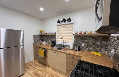 Historic charm and modern amenities. Private entrance, fully equipped kitchen, bedroom with a Queen size bed and sleeper sofa in the living room. WiFi. Smart TV. Steps from one of Cleveland's trendiest neighborhoods, shopping on West 25th. Very walkable! Short ride to Edgewater Beach, Downtown, theater district, sport venues and major hospitals. Great for traveling nurses, temporary insurance claims housing, or corporate rentals!
