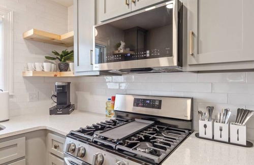 This trendy bungalow is centrally located near all of Tulsa's hotspots, making your stay as easy and convenient as possible. When you arrive at Trendy in Tulsa, you will find everything you need to feel right at home (including coffee/basic kitchen appliances/utensils and more)!