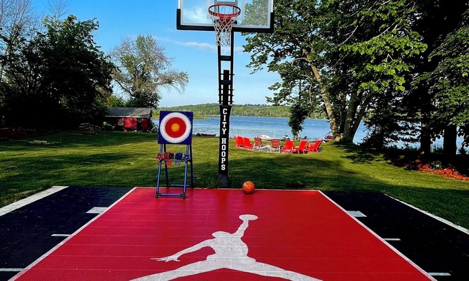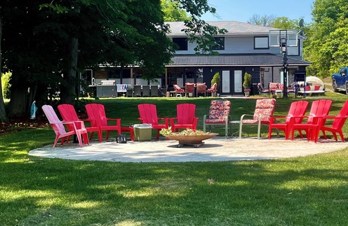 Rent the entire cottage Only 1.5 hours away from Toronto, 5 Bedroom+Den, 2.5 Bathrooms, 150 ft of water front on over an acre land. This house is set up for family fun with basketball court, game room (pool table, shuffle board, foosball table), enormous kitchen, hot tub, gym & large firepit an excellent spot to watch sunrise, sunset & family time under the stars. Enjoy water views from the sunroom. Great fishing, endless miles of boating & next to Trans Canada Trail
