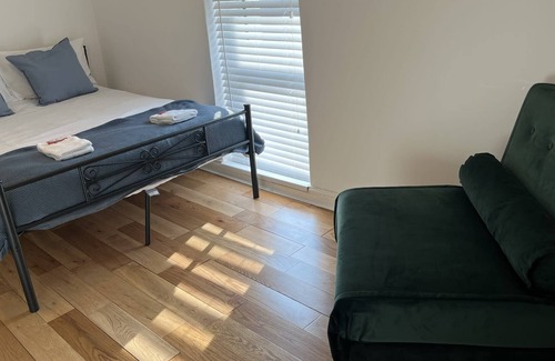 As you enter you will find yourself in an open plan living area with sofa and smart TV. The kitchen is fully equipped with everything you need for your stay including fridge, hob, oven, toaster and kettle. The shower room is also on the ground floor. The back door leads to the self contained tiered garden for you to enjoy the Welsh sunshine. Upstairs is a double bedroom and a single room which can comfortably accommodate up to three guests.