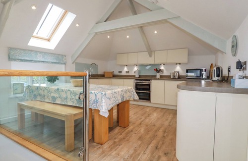Amenities: Central heating. Electric oven and hob, microwave, fridge/freezer, washer/dryer, dishwasher. Smart TV, WiFi. Fuel and power inc. in rent. Bed linen and towels inc. in rent. Stairgate, highchair and travel cot available. Private driveway for 3 cars. Multi-level, enclosed garden with courtyard, lawn, patio and furniture, with private stile to local fields. Two well-behaved dogs welcome. Sorry, no smoking. Shop 1.5 miles, pub and beach 1.2 miles. Note: Check-in from 4pm, check-out by 10am. Note: There are steps throughout the exterior and interior, unsuitable for those with limited mobility. Note: The washer/dryer rests in a cupboard, next to the shower room