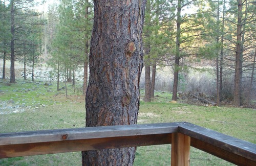 This cabin is nestled in the trees set back off the Trinity River with a quiet scenic view of the pine trees from the large covered porch, which we have found perfect for relaxing and grilling after a day on the river. Our actual property extends all the way to the river bank, across the river from Bucktail Hole, however the house itself is set back about 100 yards from the river itself.