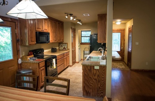 The cabin is very well equipped. We have Direct TV with a 40' flat screen TV and WIFI internet. A foosball match is always fun! A complete kitchen stocked with all the normal appliances, coffee pot, pots/pans, dishes and glasses, cooking utensils, and a gas grill on the back patio means all you need to bring is groceries.